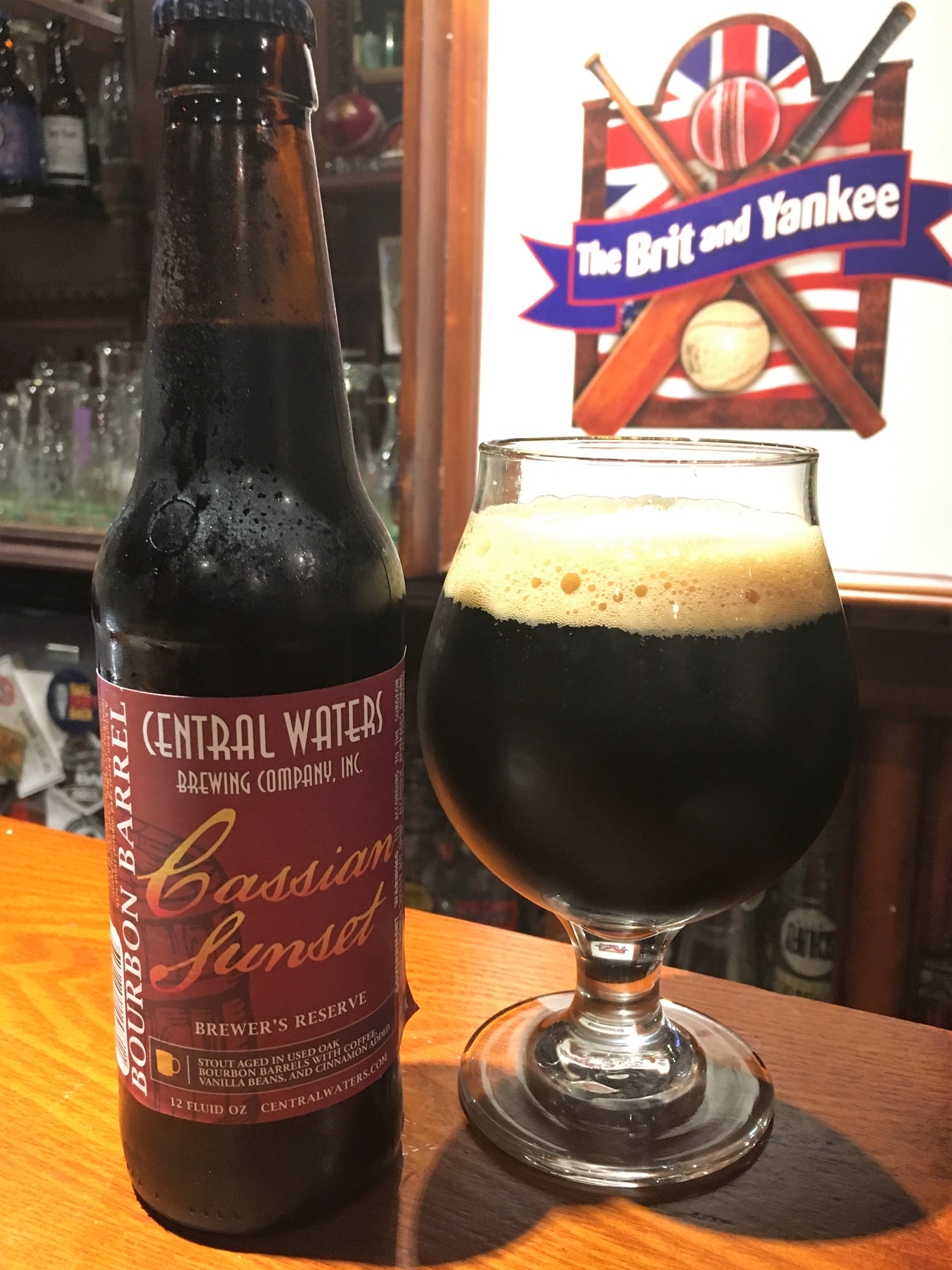 Central Waters Brewing, Amherst WI, Cassian Sunset, BBA Imperial Stout with coffee, vanilla beans and cinnamon, ABV 10.5%