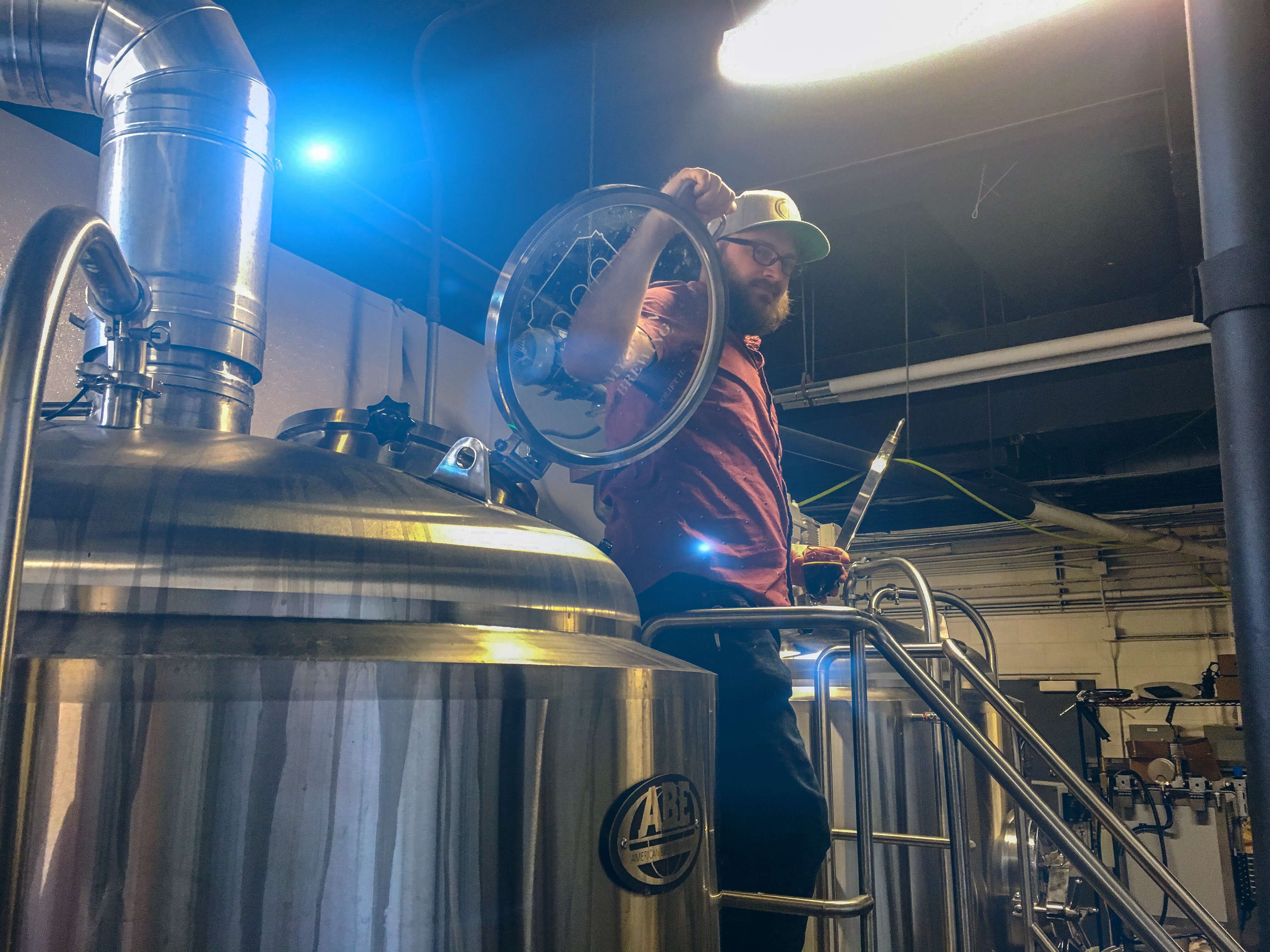 It was beautiful Fall weather when we headed down to Tinley Park to record our latest episode outside in a beer garden. We’re at Banging Gavel Brews who have been brewing since the end of 2014 but still have not been able to brew or serve at their chosen location, the historic Vogt House, for a variety of reasons. Instead, they have opened up a fantastic beer garden, complete with their version of a ‘jumbotron’ so their patrons can enjoy the outside, drink their great brews, and watch their favorite college and pro sports.