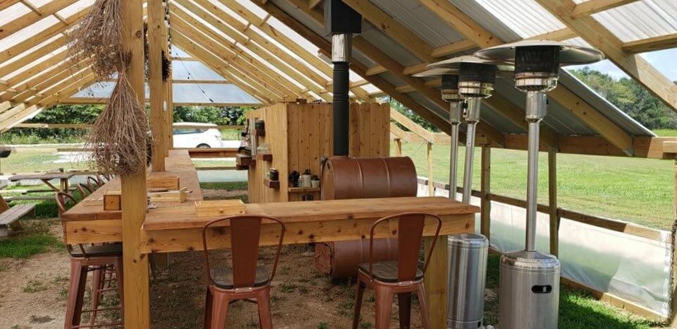 We hear how they started with nothing, cleared the land, put in solar power and some wind power, and are now a unique off-the-grid brewery. Then they erected the fabulous Treehouse Bar, where toy can relax in among the beautiful trees while sipping on everything from sour cherry gruits to green grape saisons. And for those who want to make a day of it, bring your grilling supplies and food and make use of the many BBQ’s and picnic benches they provide. In the winter, the Greenhouse bar is reported to be the place to go, where a double-barrel stove keeps their clientele warm and snug, even when it’s freezing outside.