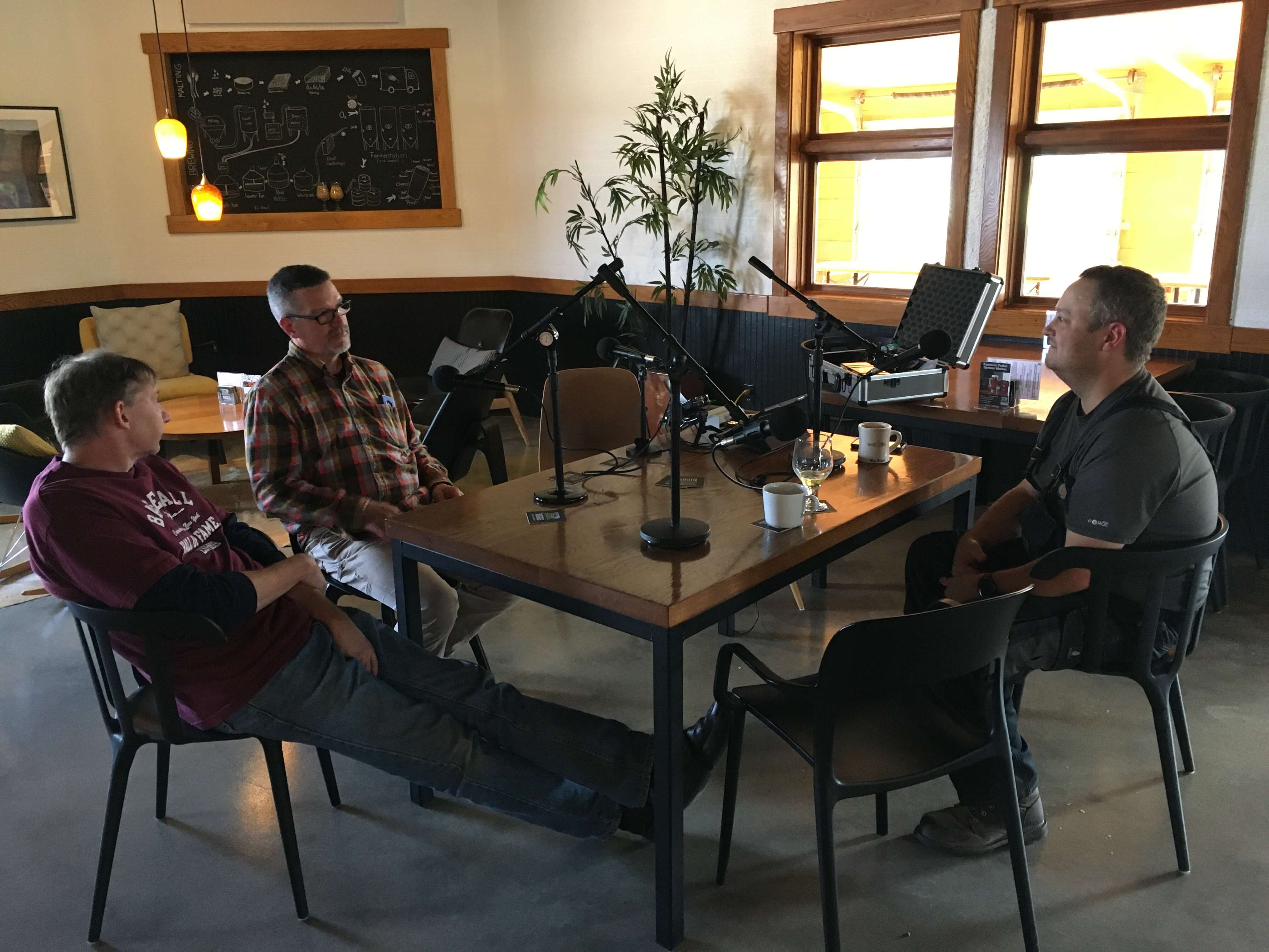 It was Tuesday, and the taproom was closed today, so we had the place to ourselves, so the mics were setup, samples of brews were provided, and we talked with them about their life histories, their journeys into brewing, and the beer styles they are producing. This edition take the farm-to-brewery-to-glass story to another level as we learn about how these guys are growing the corn and wheat needed for a lot of their beers, while at the same time being 90% self-sufficient with their solar panels.