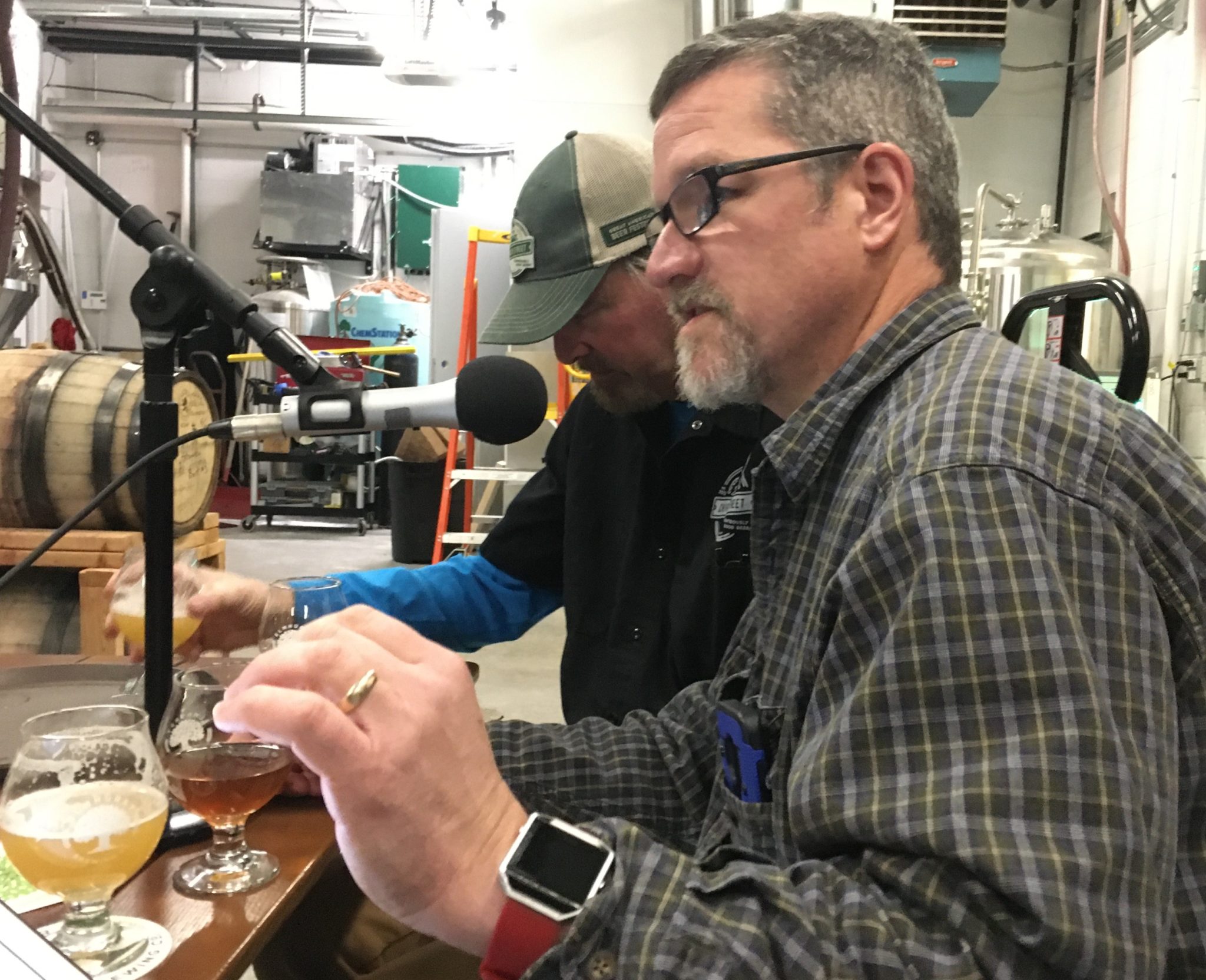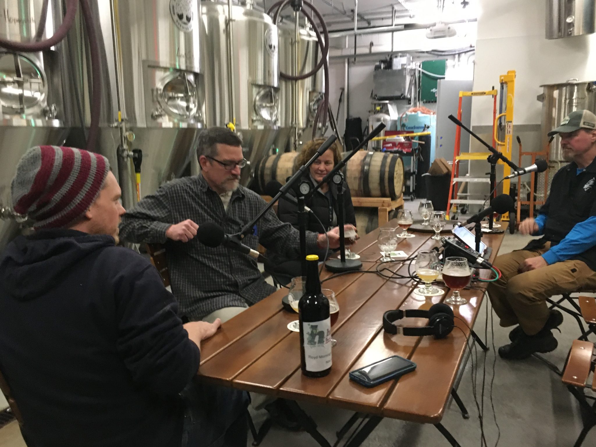 The Brit was joined by both of his co-hosts, Chuck Fort from Church Street and Ken McMullen from Hopvine and we setup in the brewery to chat and sample brews. Lisa Gregor from Church also stopped by…something about keeping an eye on Chuck we think!