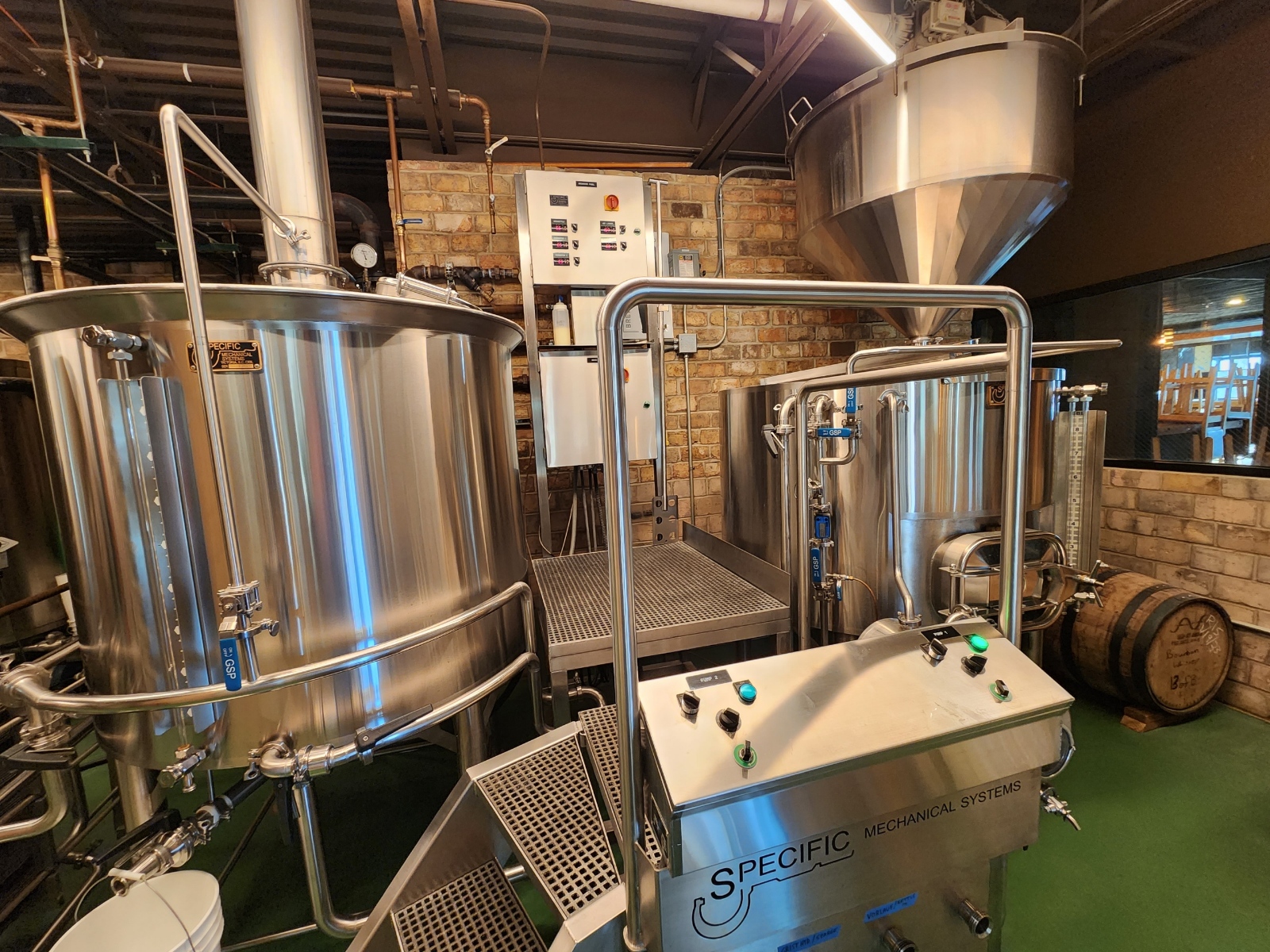 BBGB is the brewery arm of an amazing restaurant called Hardware, which from a distance looks like something out of a Mad Max movie, but in reality is an experiment in recycling. Opened in 2007, they describe themselves as a sustainable gastropub and brewery, but it also includes a 1.5 acre hop farm, and the harvest from that provided our first sample brew. The restaurant presents a wonderful place to dine, plus the whiskey collection is vast, but we were there to find out more about the brewery, and of course, Brewmaster Bob.